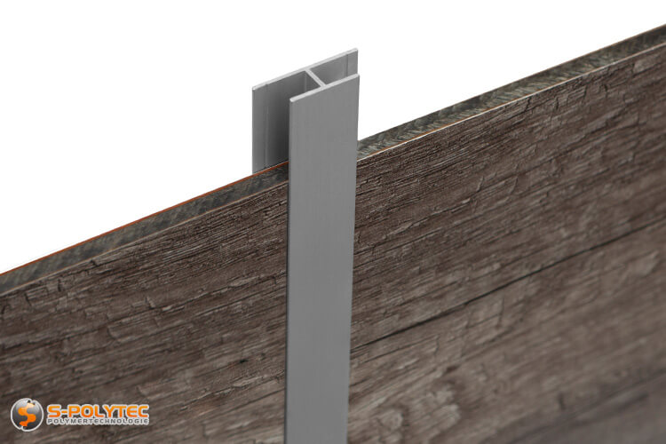 Eloxiertes Aluminium zeichnet sich durch eine herausragende Korrosionsbeständigkeit aus und verbessert die Optik der Oberfläche von unbehandeltem Aluminium deutlich. Die H-Profile, welche bei Verkleidungen zwischen zwei Platten eingesetzt werden, können aufgrund der herausragenden Korrosionsbeständigkeit bedenkenlos im Außenbereich eingesetzt werden. Die hochwertige, silberne Oberfläche ist dabei nicht nur ideal für silberne Alu-Verbundplatten oder HPL Platten in Silbergrau, sondern setzt auch einen ansprechenden Kontrast bei Verkleidungsplatten und Bodenbelägen in Holzdekor und sticht bei intensiven Farben und dunkleren Grautönen ins Auge. Dies wertet die Optik an den Stoßkanten der Platten auf einfache, jedoch effektive Weise auf. Insbesondere im Außenbereich, oder beim Einsatz in Feuchträumen, hat die Kantenüberdeckung den Vorteil, dass durch den Einsatz der H-Profile keine Feuchtigkeit durch die Zwischenräume der aneinandergrenzenden Platten ins Mauerwerk gelangt, wodurch das Bauwerk vor Feuchtigkeitsschäden besser geschützt wird.
