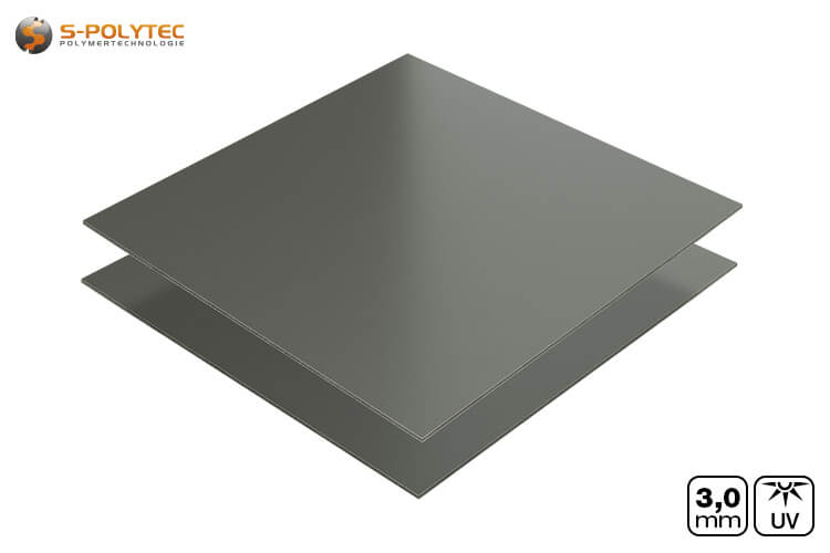Unsere Alu Verbundplatten in Staubgrau in RAL7037 werden exakt nach dem RAL-Farbsystem hergestellt und sind in einer Stärke von 3mm erhältlich. Die Verbundplatten bestehen aus einem schwarzen Kern aus Polyethylen, sowie beidseitig ca. 0,3mm starken Deckschichten aus Aluminium mit UV-beständiger, kratzunempfindlicher Einbrennlackierung. Diese drei Schichten werden im Sandwichverfahren unzertrennlich zu einer stabilen Platte verbunden. Dadurch weisen Alu Verbundplatten eine hohe Stabilität, bei einer gleichzeitig hohen Biege- und Bruchfestigkeit auf. Der Kern aus schwarzen PE ist dabei nur an Fräs- und Schnittkanten sichtbar.